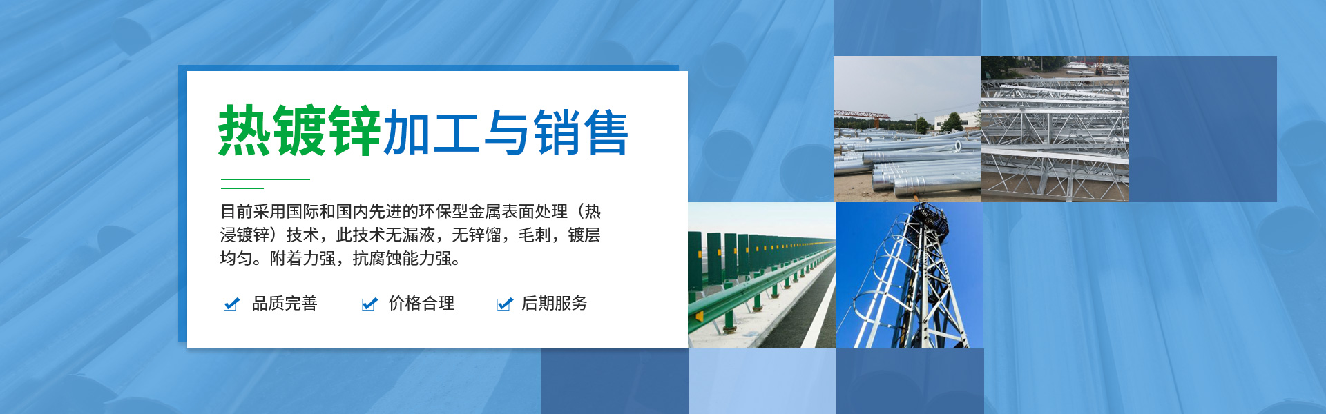 采用國(guó)際和國(guó)內(nèi)先進(jìn)的環(huán)保型金屬表面處理(熱浸鍍鋅)技術(shù),此技術(shù)無(wú)漏液,無(wú)鋅餾,毛刺,鍍層均勻。附著力強(qiáng),抗腐蝕能力強(qiáng),曾為我國(guó)電力,公路,高鐵,通訊,燈桿等大型金屬表面防腐工程加工產(chǎn)品